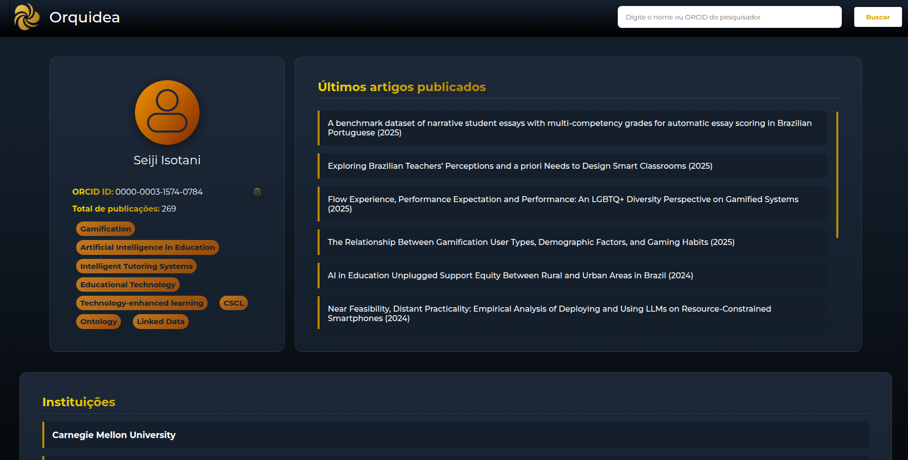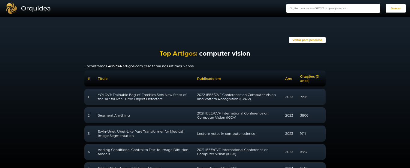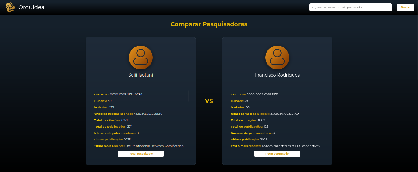 While ORCID provides a powerful database of academic information, its interface can be limited for everyday exploration. Orquidea focuses on improving usability and design, offering a clean and intuitive platform to navigate researcher profiles, visualize metrics, and discover collaboration opportunities.